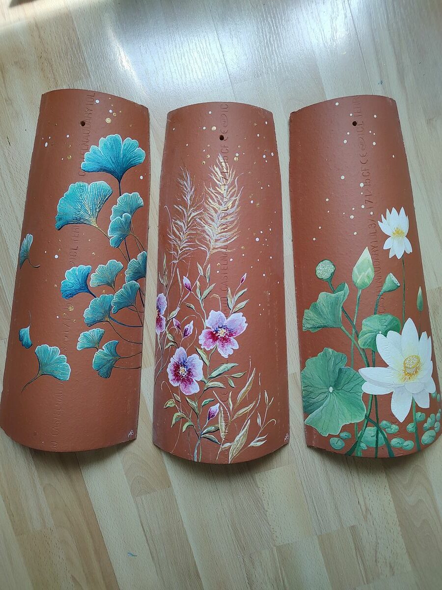 Choisissez en fonction de votre déco, les couleurs, motifs, fleurs, que vous souhaitez que je peigne sur votre tuile !